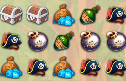 Gioco del tipo ''allinea tre pezzi'' con grafica ispirata al mondo dei pirati. Eliminate il numero richiesto di pezzi per passare il livello.