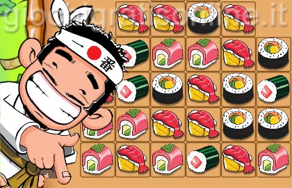Il prelibato piatto giapponese a base di pesce crudo fa da sfondo a questo gioco di logica del genere ''allinea tre pezzi''.