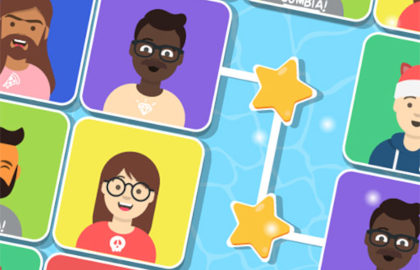 Individuate le coppie di personaggi uguali per eliminarle, a condizione che il percorso che le collega sia ''libero'' e non compia più di due curve.