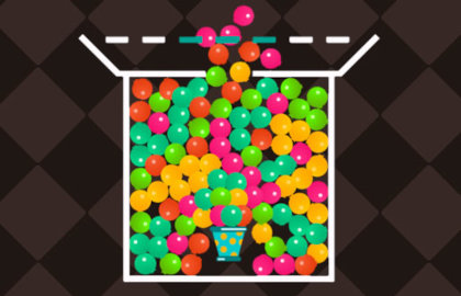 Riempite il contenitore di palloncini fino al livello stabilito, cercando di non farne cadere più di tre.