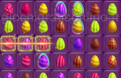 Grafica a tema pasquale per questo gioco del genere ''match 3'', in cui bisogna allineare almeno tre uova per eliminarle.