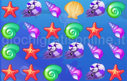 Grafica ispirata al mondo marino per questo gioco in cui bisogna scambiare di posto due pezzi vicini, cercando di allinearne almeno tre per eliminarli.