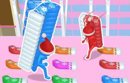 Raccogliete i guanti blu ed usateli per costruire un ponte che vi porti in cima alla piattaforma più alta prima che lo facciano gli altri.