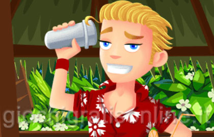 La nostra intraprendente amica ha aperto un bar sulla spiaggia, ed eccola già alle prese con i clienti, da servire in fretta prima che si spazientiscano.