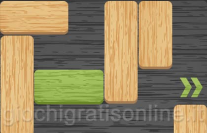 Spostate in maniera opportuna i blocchi di legno per permettere al blocco di colore verde di raggiungere l'uscita.